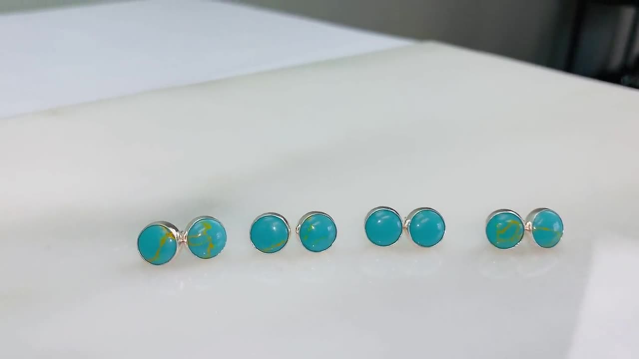 Real Turquoise Stud Earrings Earrings Studsilver Turquoise Etsy